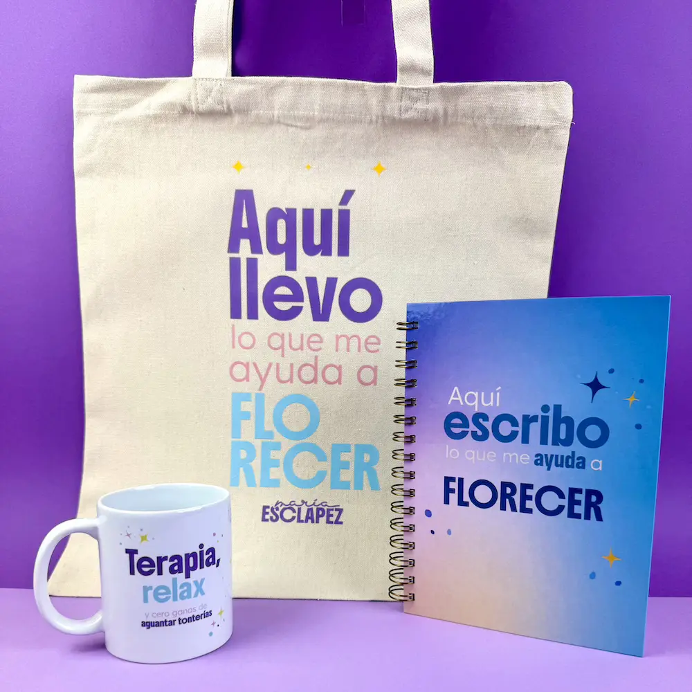 Totebag “Aquí llevo lo que me ayuda a florecer”
