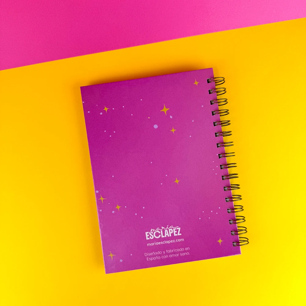 - Encuadernación tipo wire-o en dorado, para abrirla totalmente sin pelearte con las hojas.