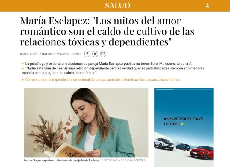 María Esclapez: «Los mitos del amor romántico son el caldo de cultivo de las relaciones tóxicas y dependientes»