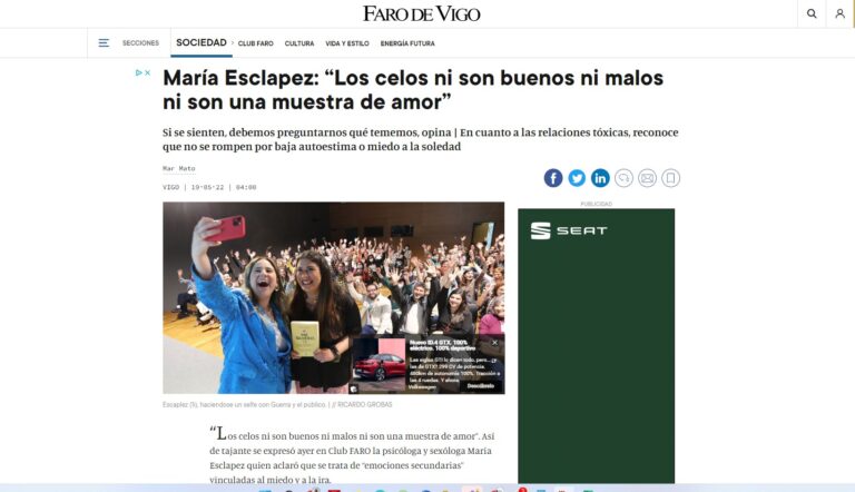 María Esclapez: “Los celos ni son buenos ni malos ni son una muestra de amor”